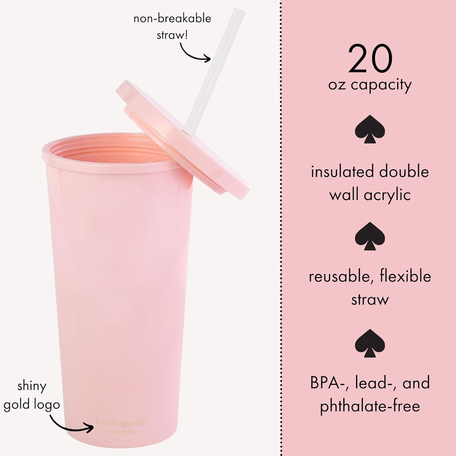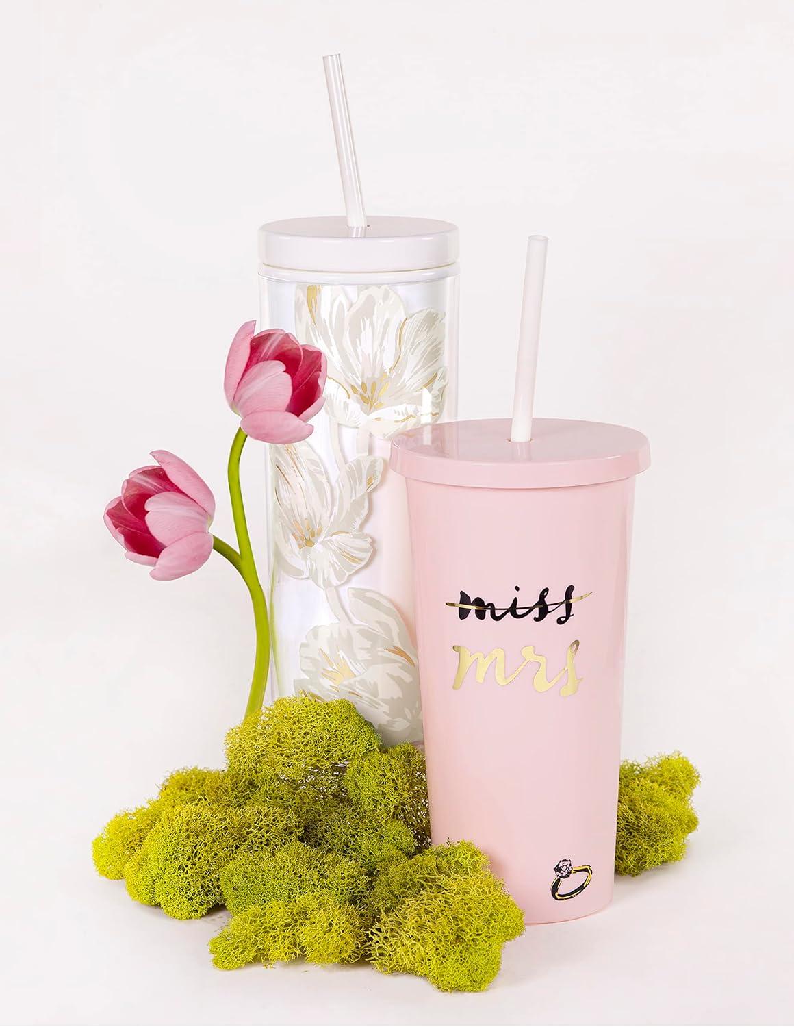 kate spade new york Acrylic Bridal Tumbler with Lid and Straw, 20 oz Tumbler for Bride to Be, Slim Double Wall Tumbler, Miss to Mrs. (Blush)