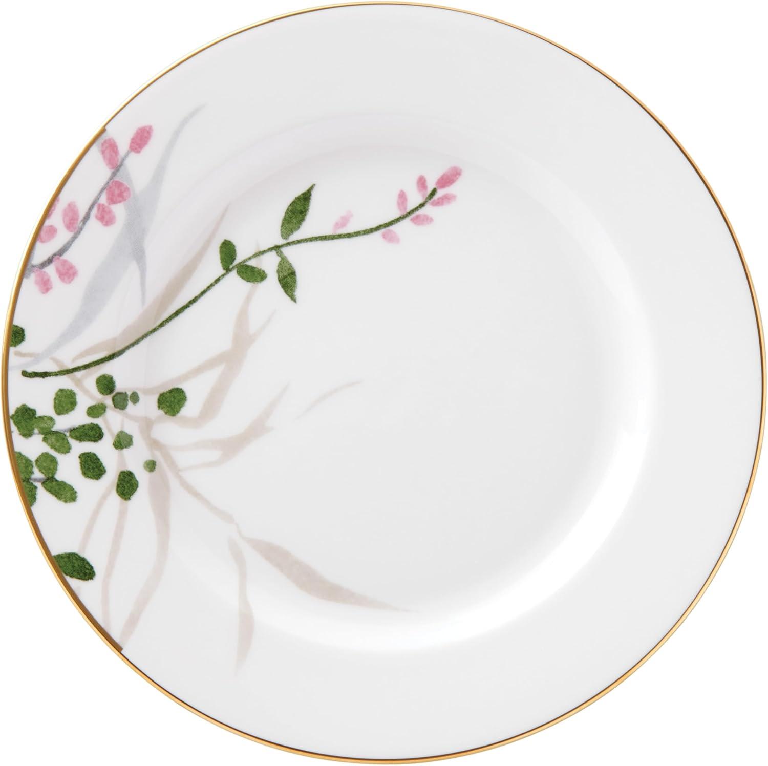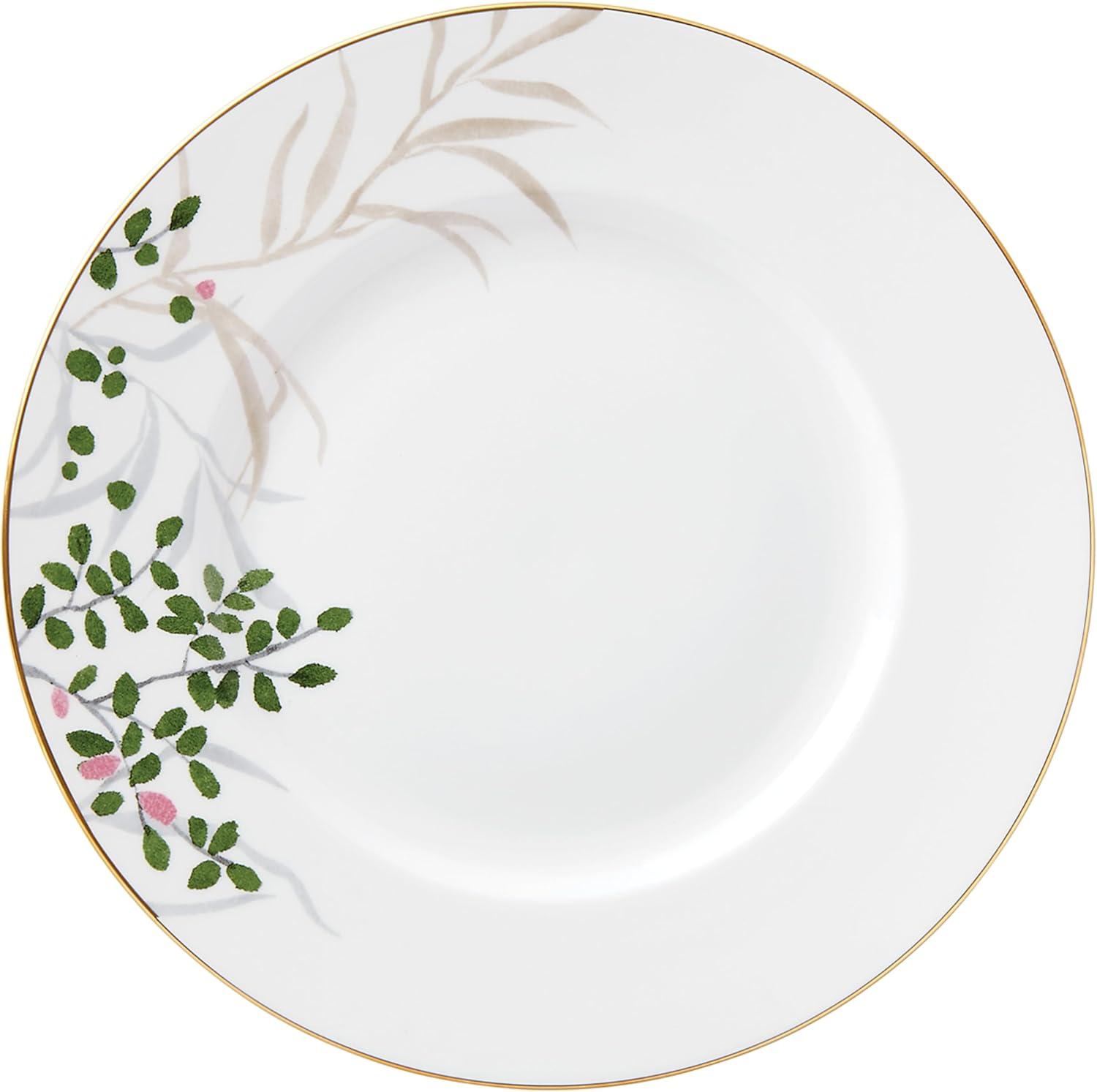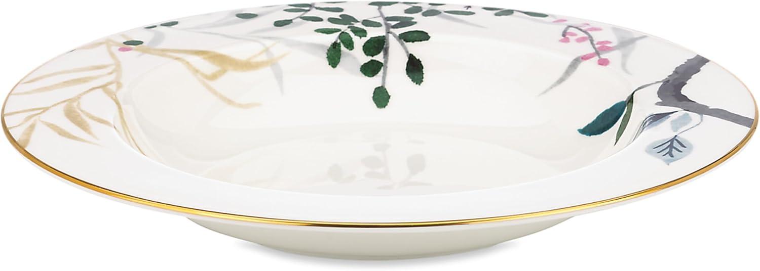 Delicate watercolor-inspired florals give a hand-painted feel to this Birch Way collection for a whimsical accent to fine dining. This rimmed bowl is crafted of durable white bone china, with 24k gold accents, and is both dishwasher-safe and tarnish-resistant.