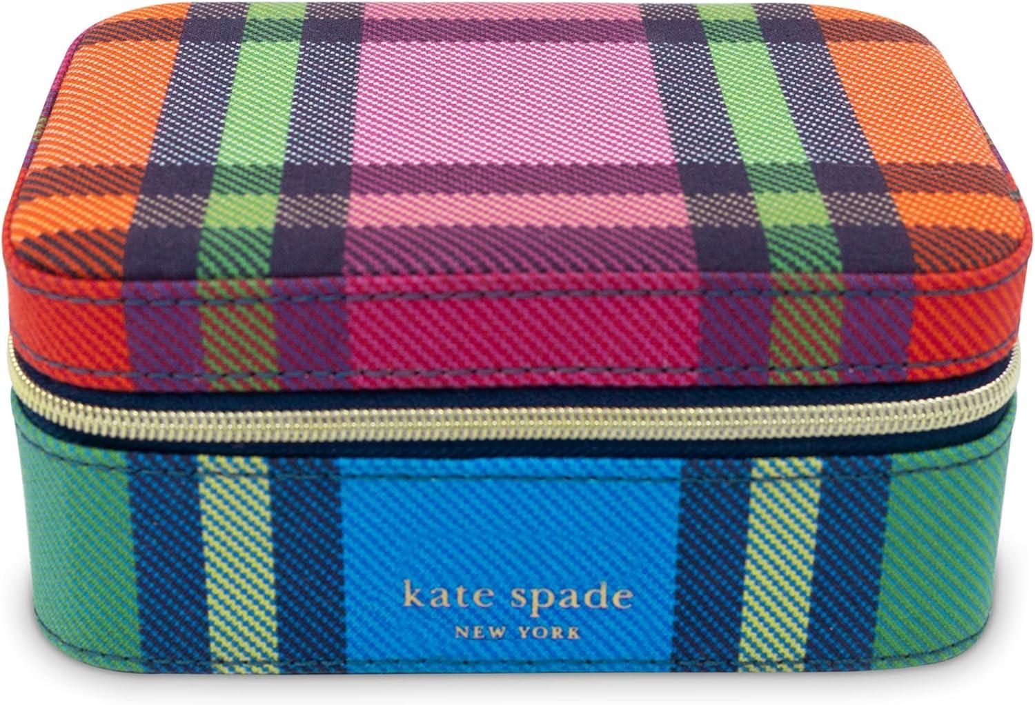 kate spade new york Black Travel Jewelry Case, Small Jewelry Box to Organize Rings, Necklaces, Earrings, Grand Plaid Duo