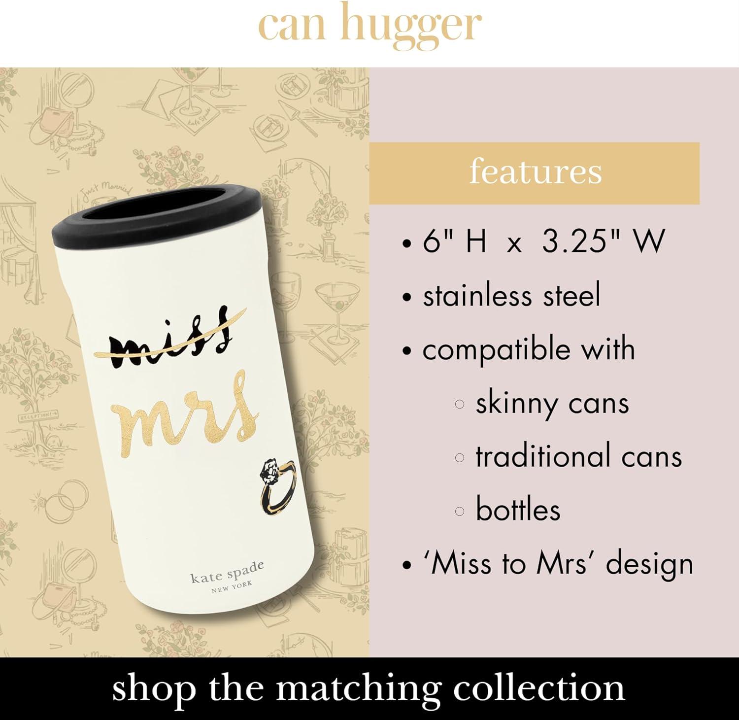 kate spade new york Bridal Can Hugger, Stainless Steel Double Wall Can Cover for Bride, Slim Insulated Drink Holder, Miss to Mrs.