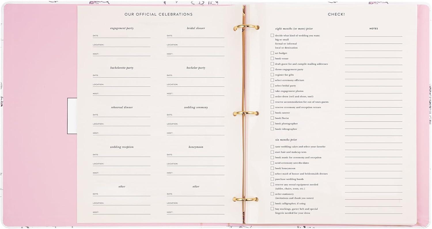 kate spade new york Bridal Wedding Planner Binder, Personal Organizer for Bride with Pages for To-Do Lists, Notes, Budgeting, Invitations, I Do (Gold Heart Knot)