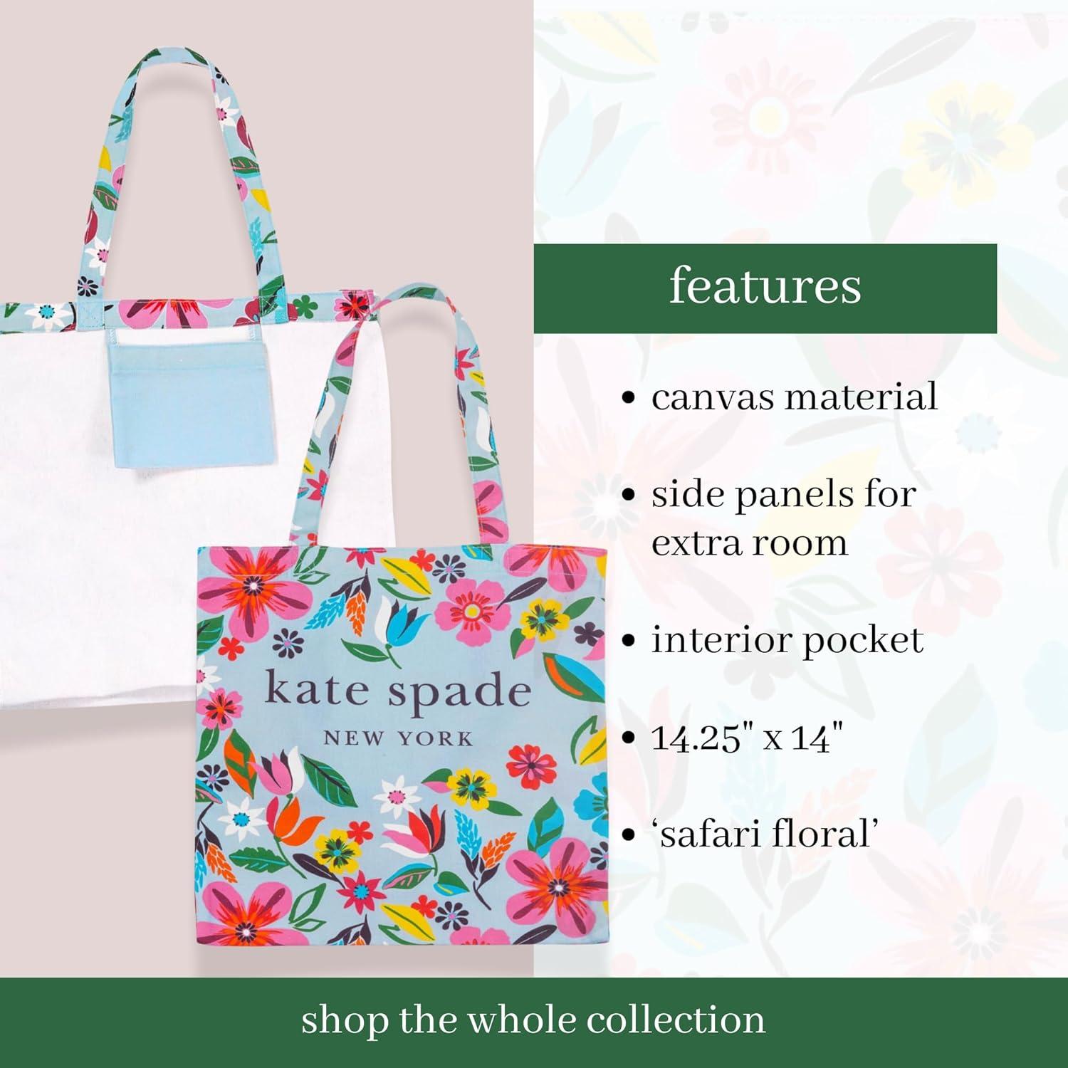 kate spade new york Cute Canvas Tote Bag for Women, Canvas Beach Bag, Book Tote with Pocket, Safari Floral