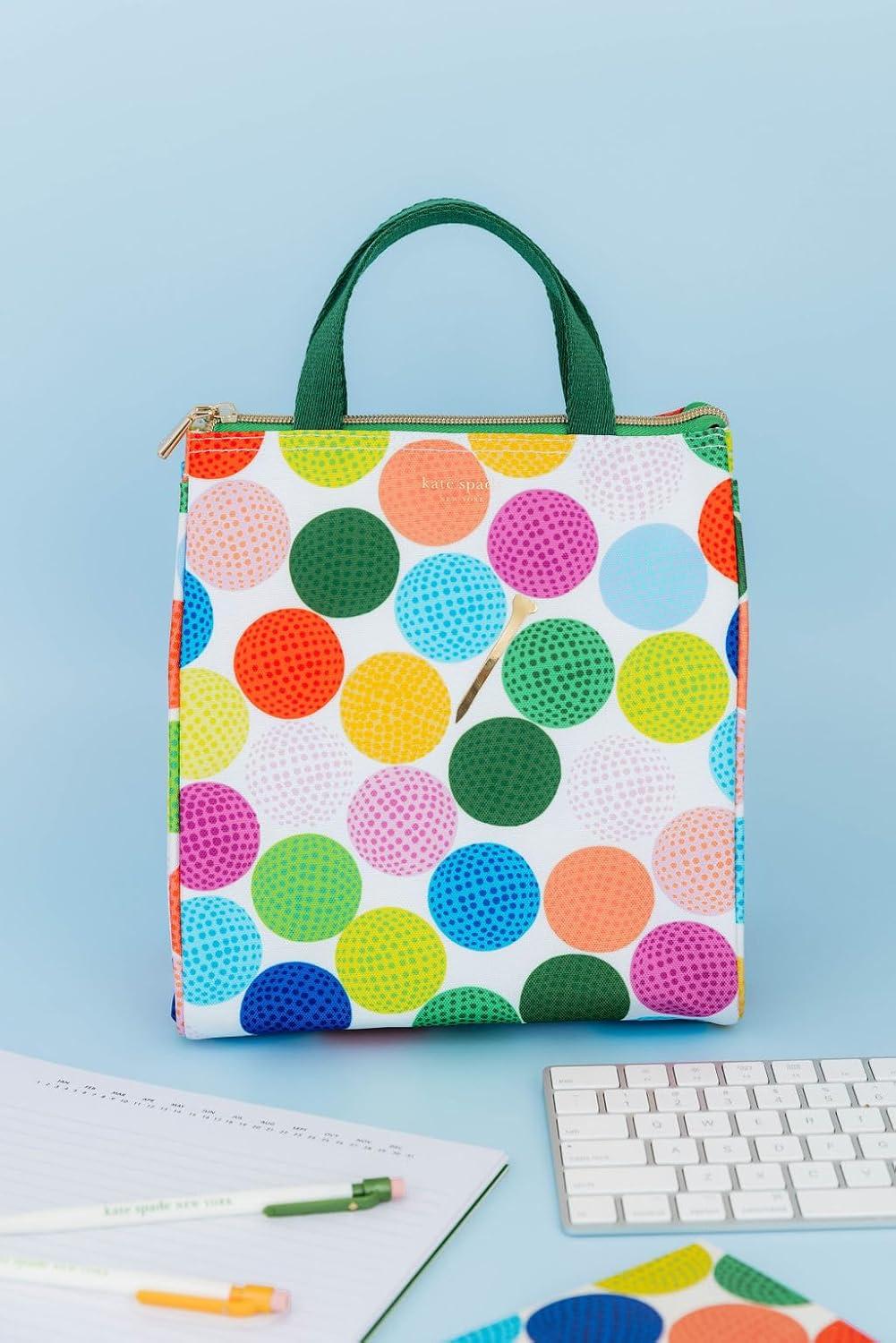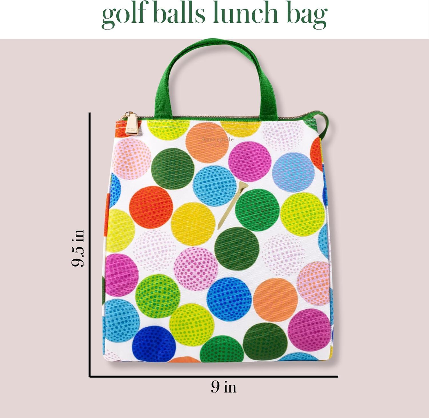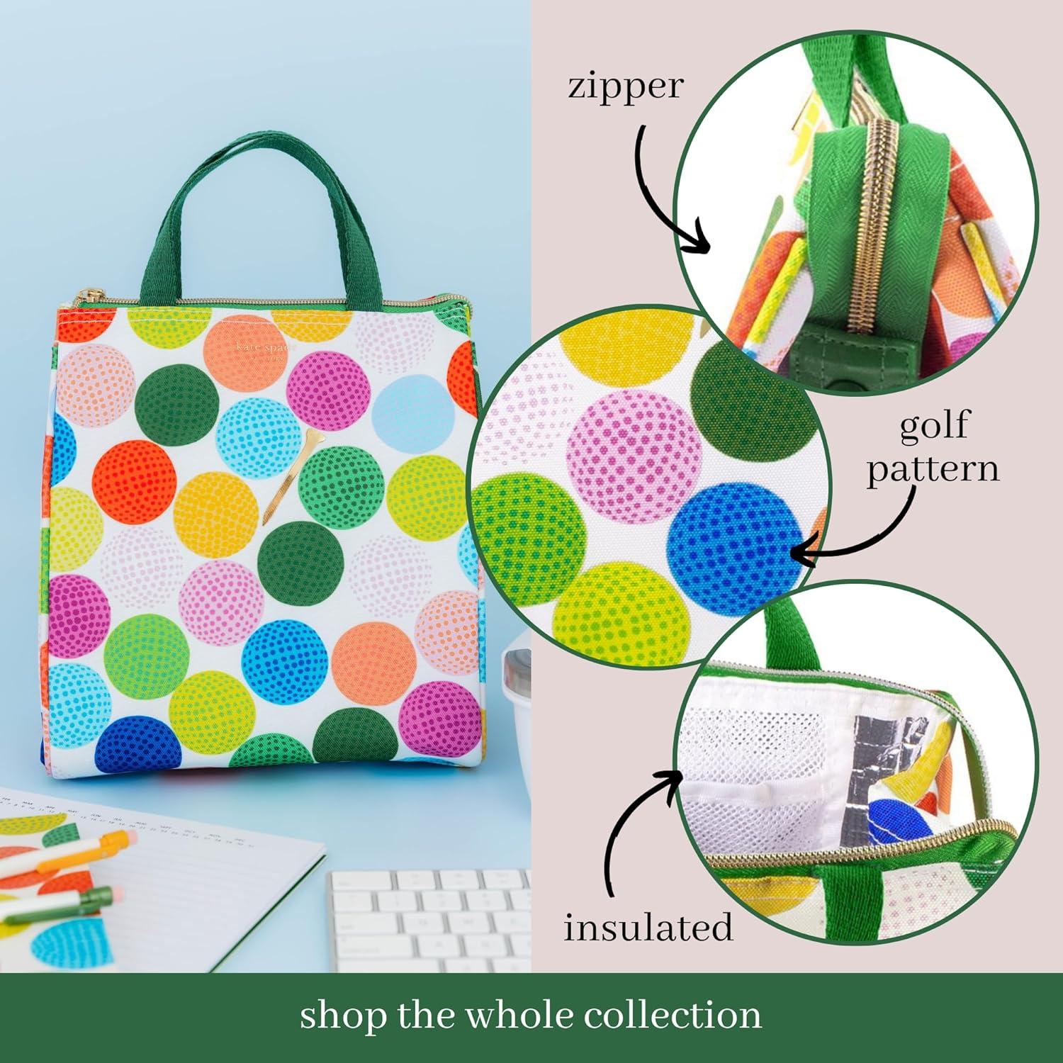 kate spade new york Cute Lunch Bag for Women, Large Capacity Lunch Tote, Adult Lunch Box with Silver Thermal Insulated Interior Lining and Storage Pocket (Mini Golf)
