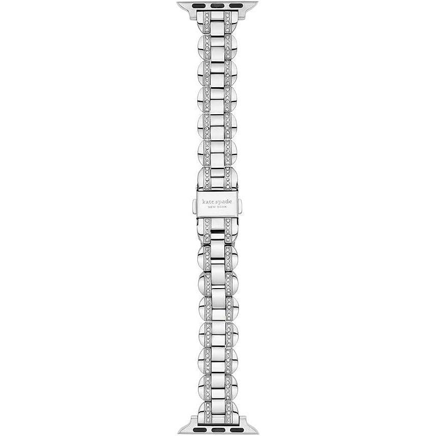 Kate Spade New York Designer Interchangeable Stainless Steel Band Compatible with Your 38/40/41mm Apple Watch Series 9/8/7/6/5/4/3/2/1/SE(Silver Glitz)