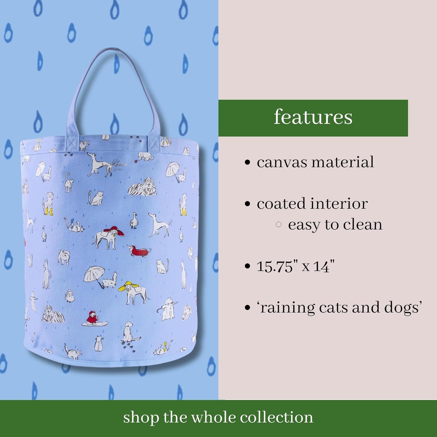 kate spade new york Dog Toy Bin with Handle, Coated Canvas Open Top Storage, Easy to Clean 15.75″ x 14″ Holder, Raining Cats and Dogs