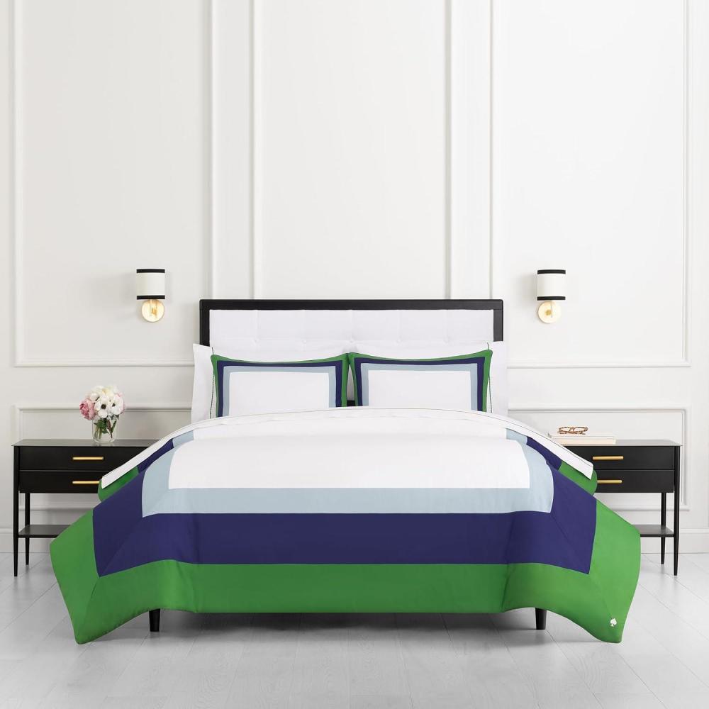 Let your bedding bring a subtle yet playful touch to your bedroom! kate spade new york's Fall Poppies Reversible Bedding Set combines comfort and style with a contemporary printed pattern on one side and a red/white stripe on the other side. This-all season bedding set features a 300 thread count, 100% cotton cover for a soft & smooth feel that ensures restful sleep. Our Full/Queen bedding set includes a comforter and two pillow shams. Available in Twin, Full/Queen and King sizes. Since its launch in 1993 with six essential handbags, kate spade new york has always stood for optimistic femininity. Today, it’s a global life and style brand. Of course, there are plenty of handbags. But there are also clothes, shoes, and lots of home decor — all things you want and use daily. With thoughtful details and polished, chic looks, kate spade new york home categories have extended to bedding, including bed pillows, sheets and comforters. The styles are synonymous with joy — and we like that.