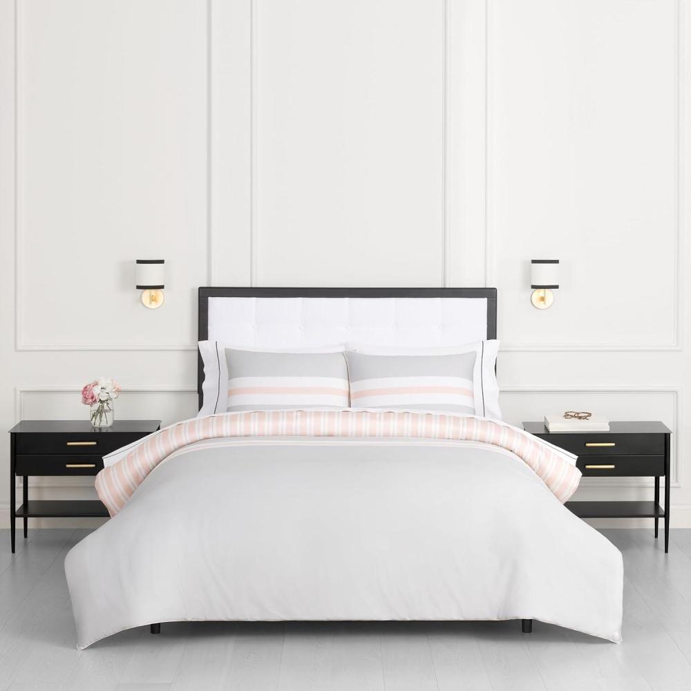 Let your bedding bring a subtle yet playful touch to your bedroom! kate spade new york's Fall Poppies Reversible Bedding Set combines comfort and style with a contemporary printed pattern on one side and a red/white stripe on the other side. This-all season bedding set features a 300 thread count, 100% cotton cover for a soft & smooth feel that ensures restful sleep. Our Full/Queen bedding set includes a comforter and two pillow shams. Available in Twin, Full/Queen and King sizes. Since its launch in 1993 with six essential handbags, kate spade new york has always stood for optimistic femininity. Today, it’s a global life and style brand. Of course, there are plenty of handbags. But there are also clothes, shoes, and lots of home decor — all things you want and use daily. With thoughtful details and polished, chic looks, kate spade new york home categories have extended to bedding, including bed pillows, sheets and comforters. The styles are synonymous with joy — and we like that.