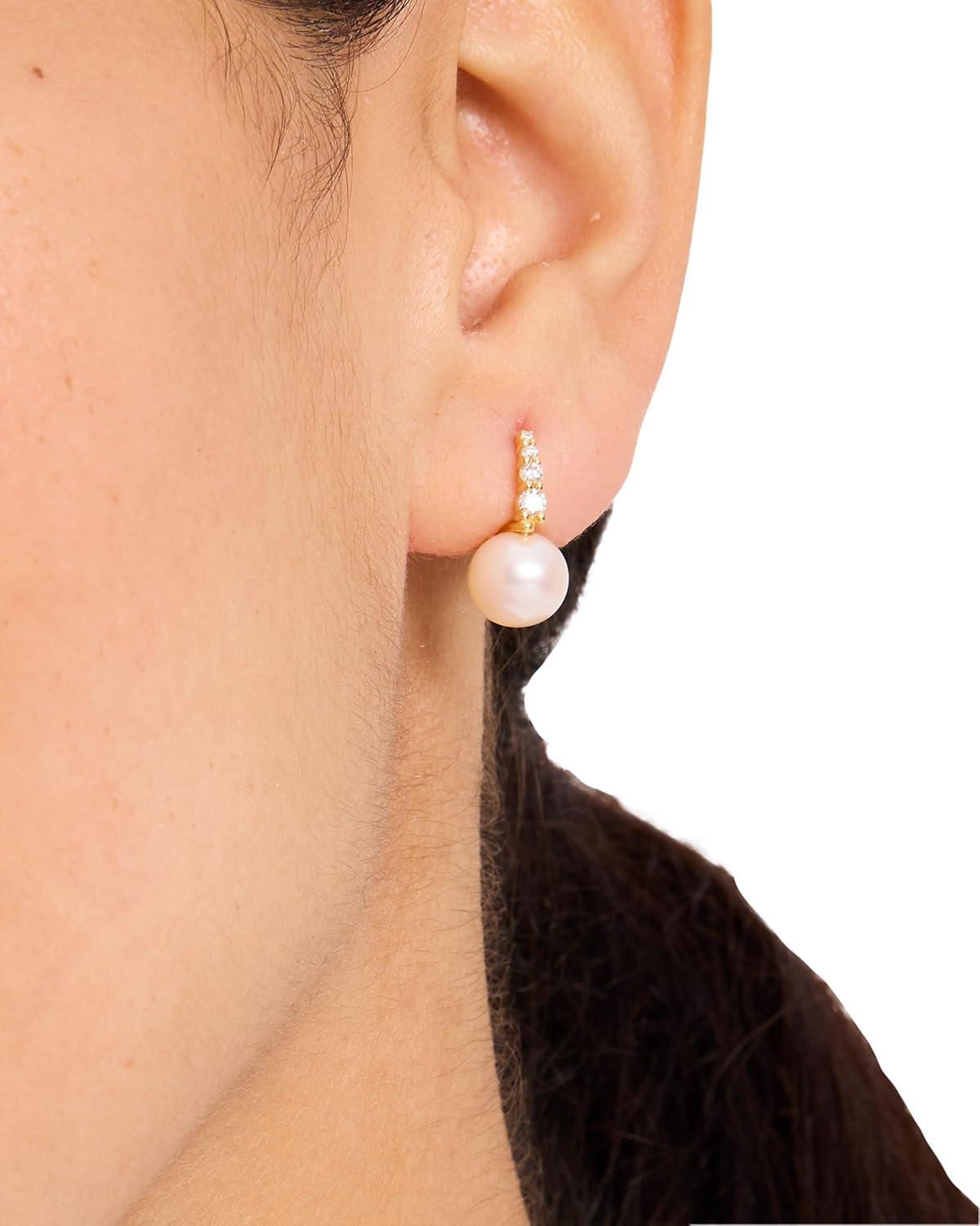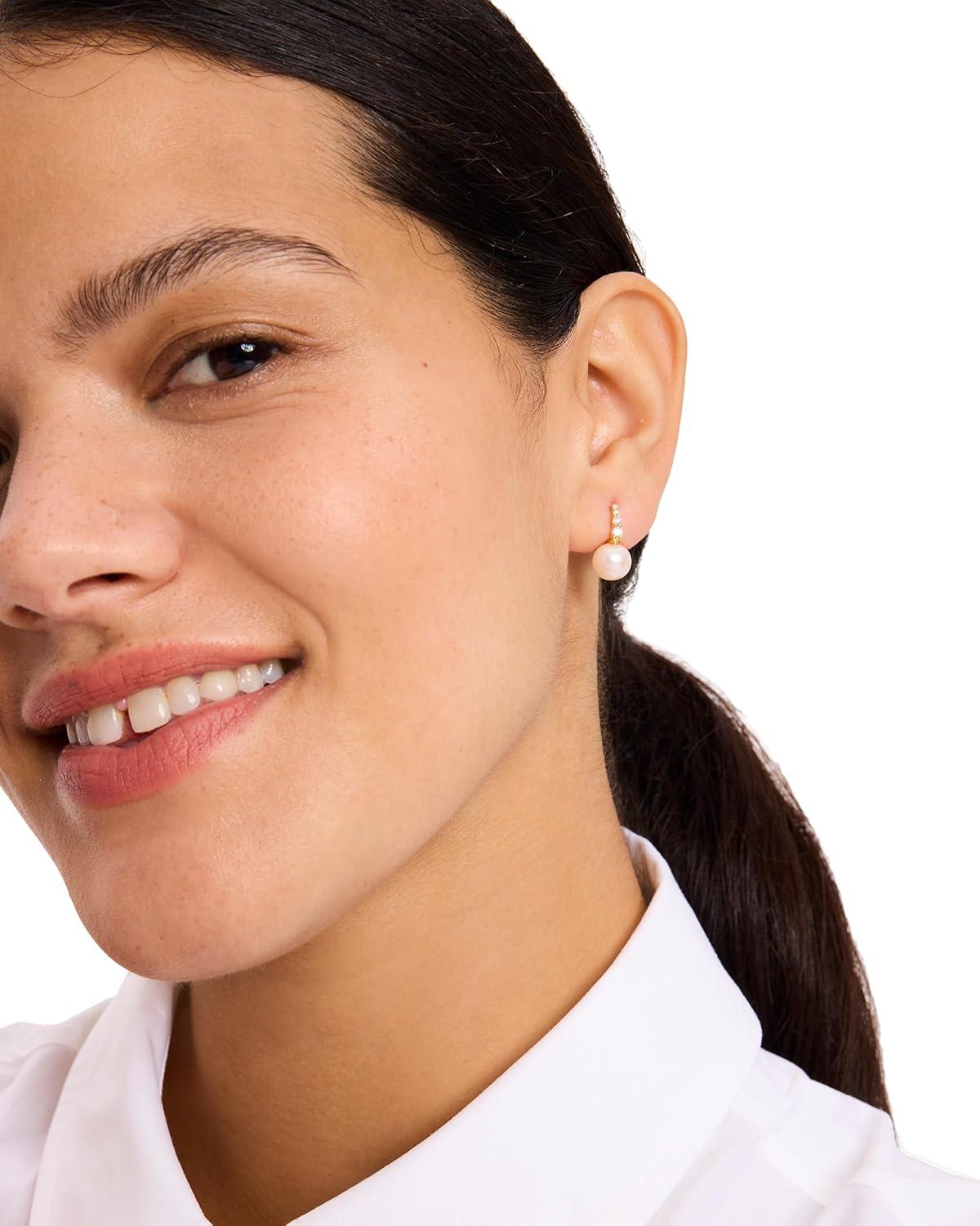 kate spade new york Fine Jewelry Meant to Be Pearl and Diamond Huggies, Gold/Pearl, One Size