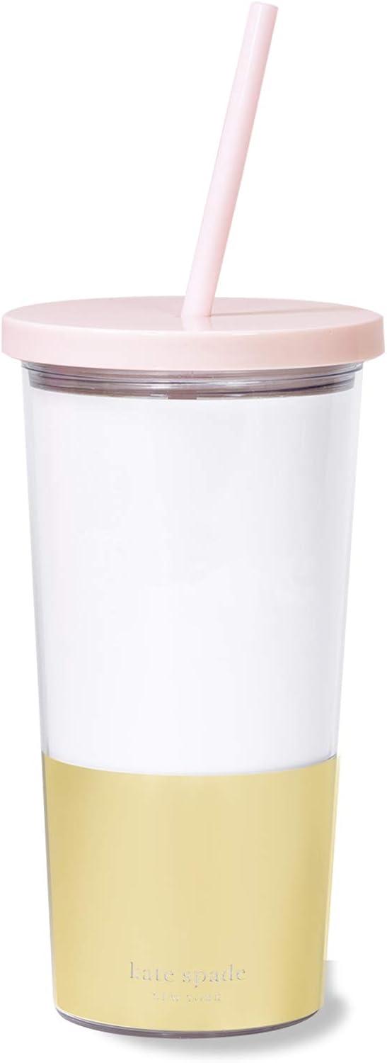 kate spade new york Gold/Blush Pink Bridal Insulated Tumbler with Reusable Straw, 20 Ounce Travel Cup, I Do (Gold)