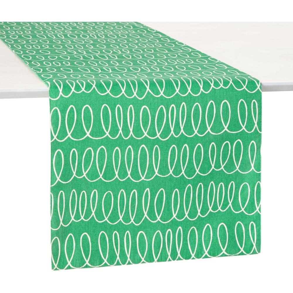 Kate Spade New York in The Loop & Joy Dot Reversible Table Runner, 100% Cotton, Machine Washable, Cream/Navy Blue, 15″x72″(Green/Cream)