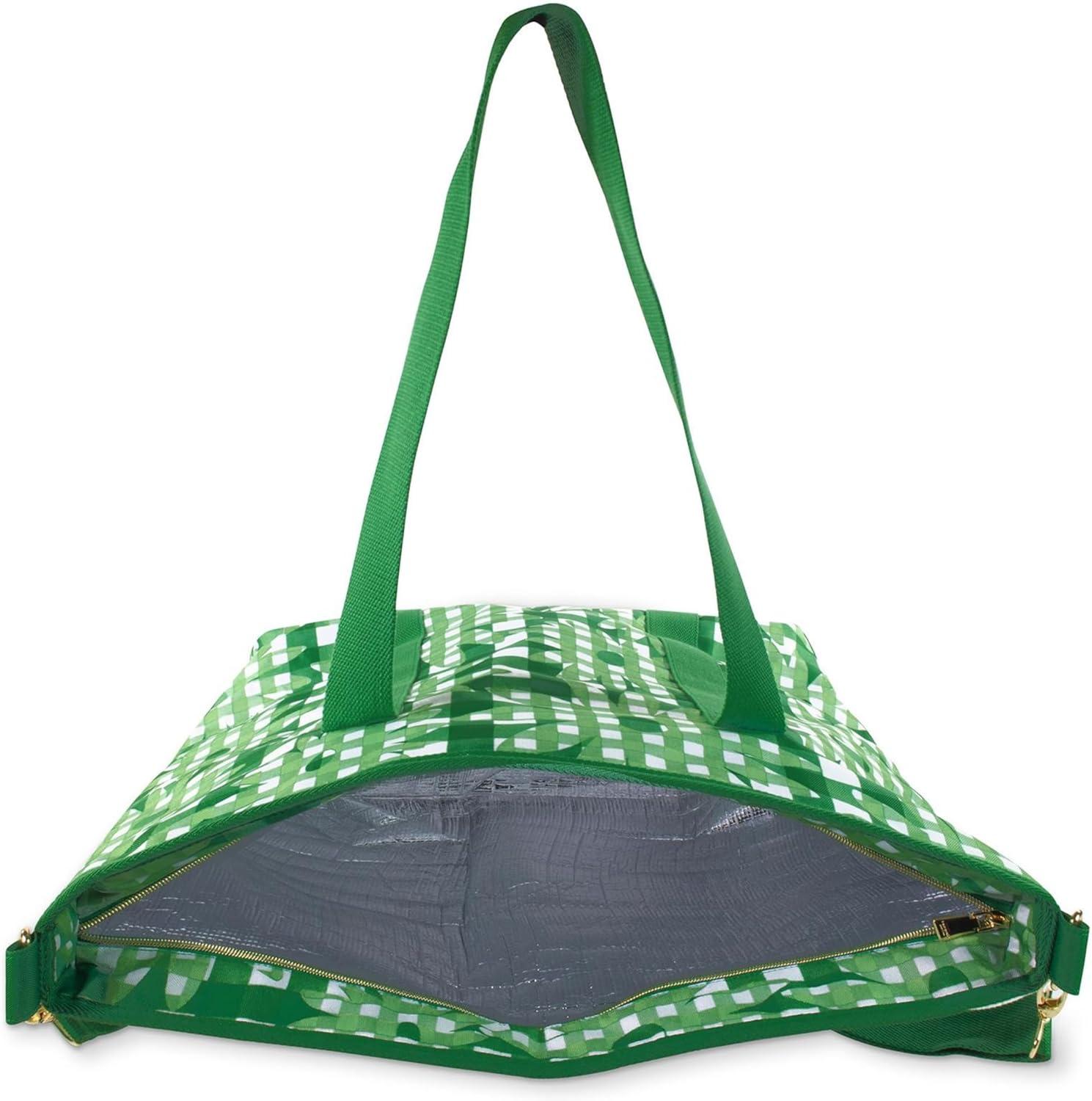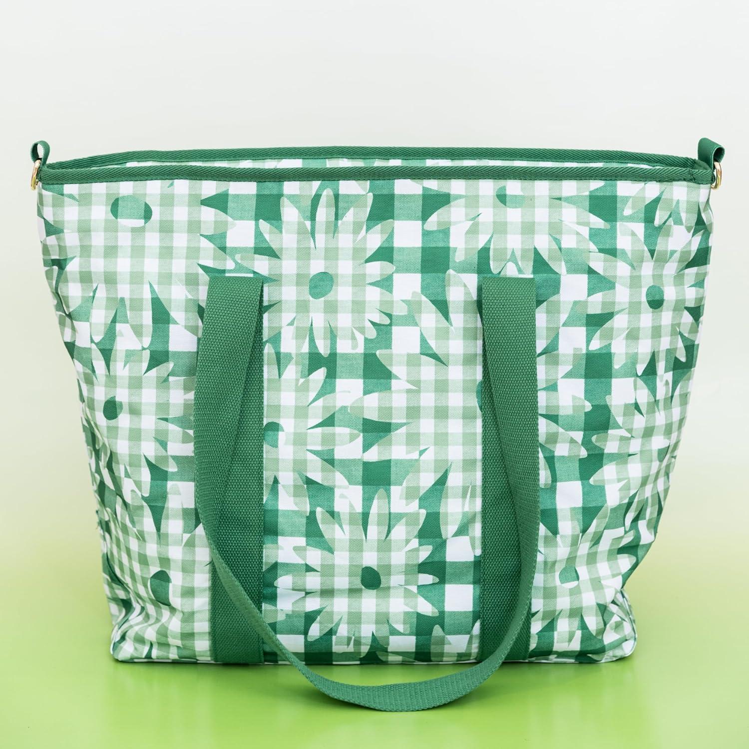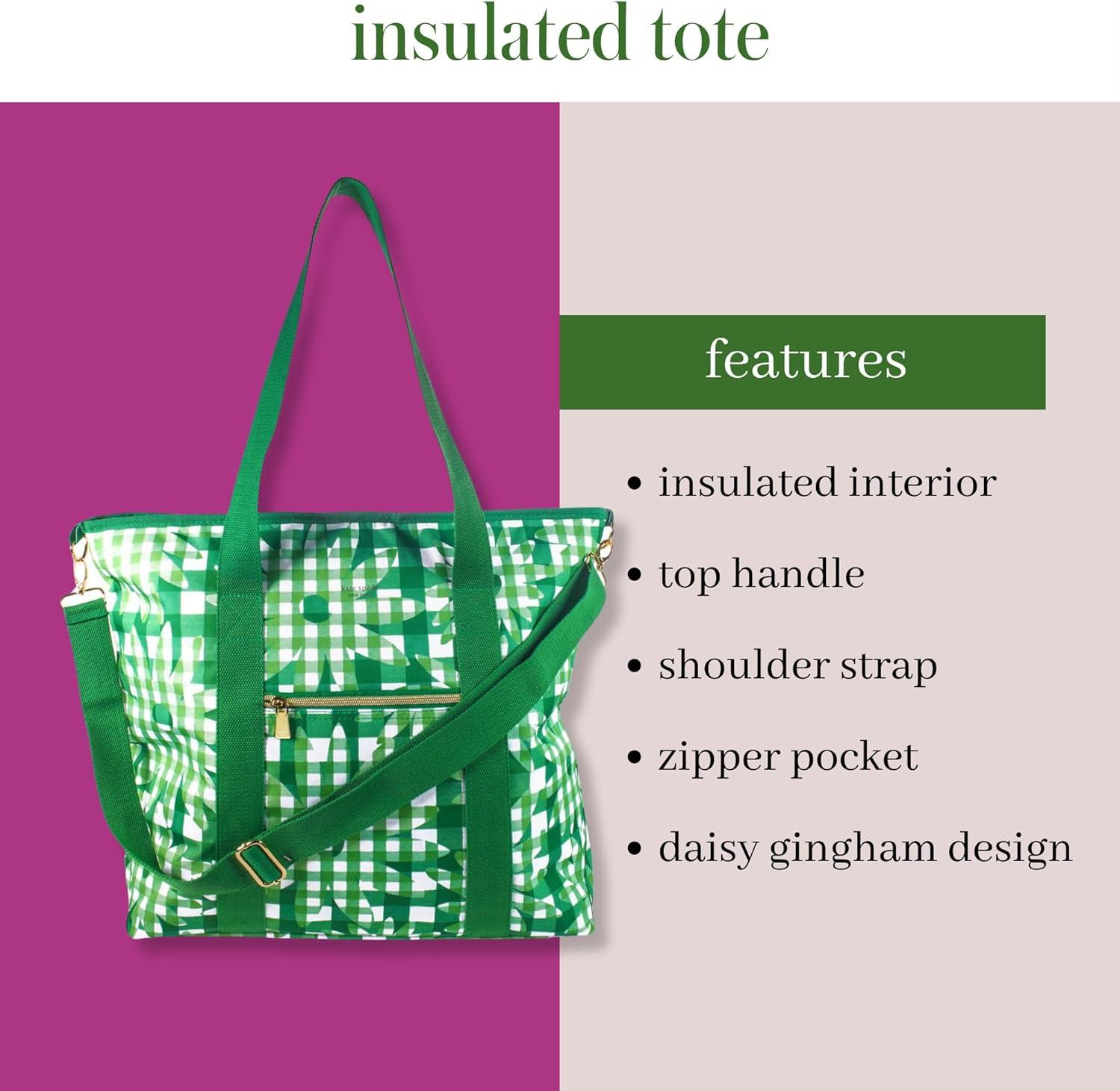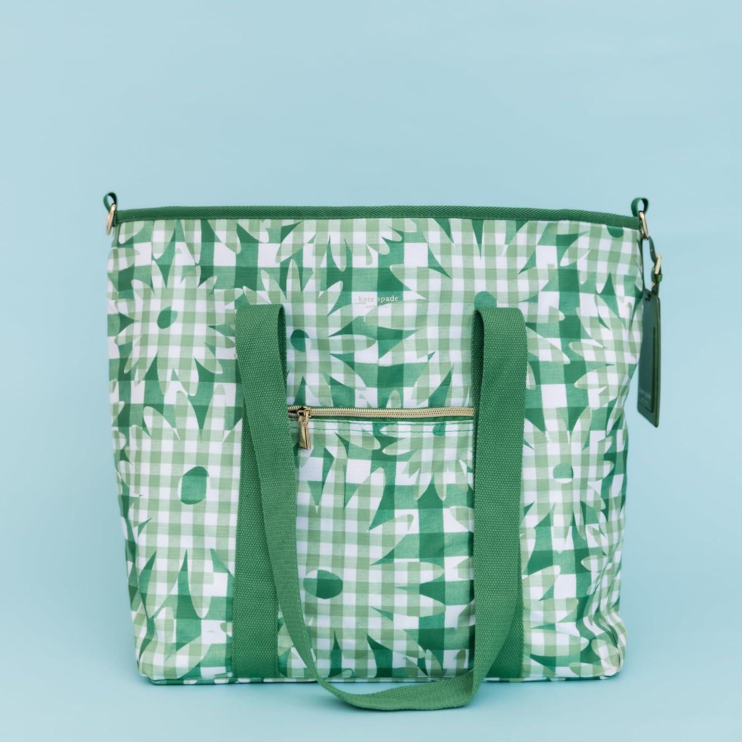 kate spade new york Large Capacity Insulated Cooler Tote Bag, Soft Sided Portable Beach Cooler for Women with Shoulder Strap and Top Straps, Daisy Gingham