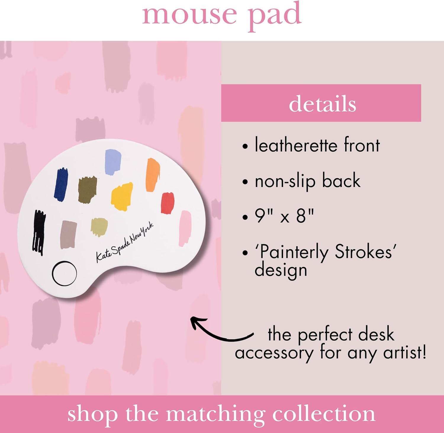kate spade new york Leatherette Mouse Pad, 9″ x 8″ Mouse Mat with Non-Slip Back, Cute Mouse Pad for Office Desk, Painterly Strokes