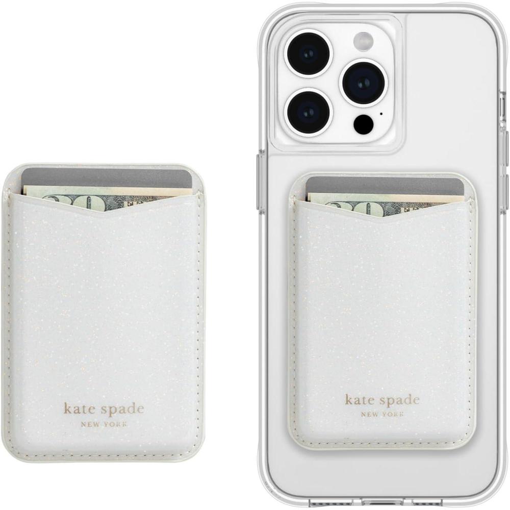 kate spade new york Morgan Magnetic Phone Wallet/Card Holder – Compatible with MagSafe Phones and Cases – Metallic Silver(White Glitter)