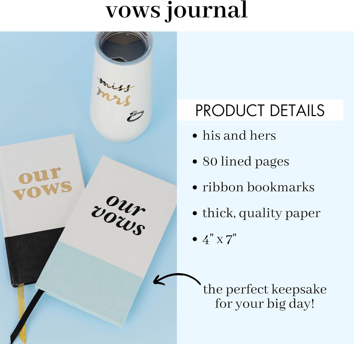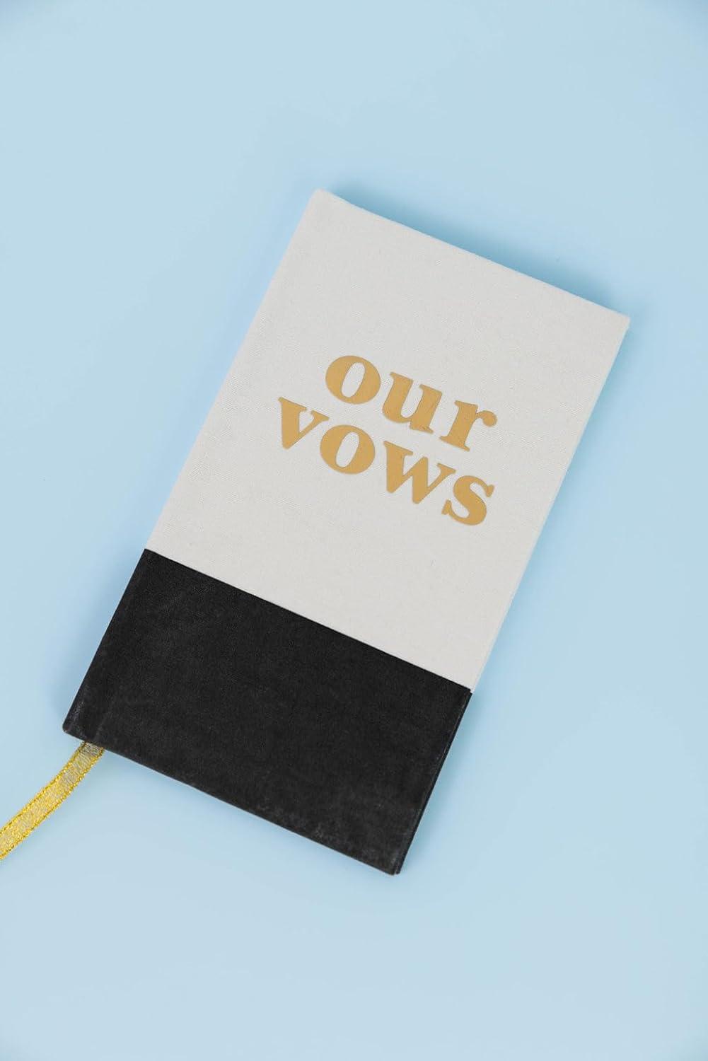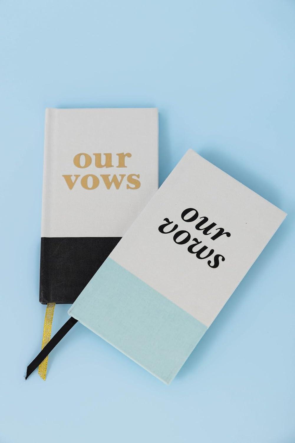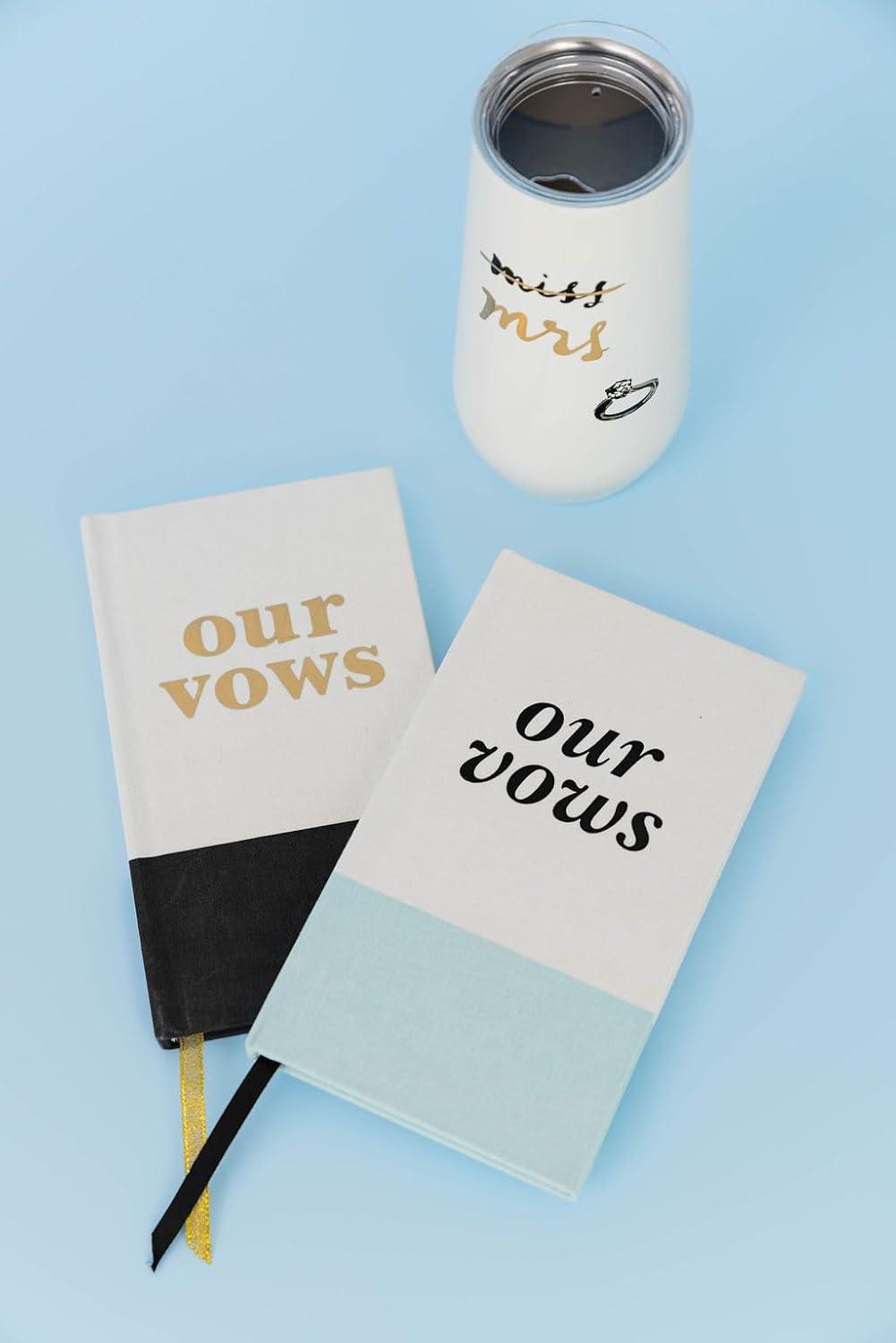 Write down your vows in this matching set of journals—one for you, and one for your beloved. Each notebook features 80 lined pages, gold foil accents, and a ribbon bookmark. This set of two 4 inches x 7 inches journals are the perfect size to record your vows or wedding plans. The luxe cloth covered cover provides an elegant touch along with the ribbon bookmarks that coordinate with the “Our Vows” quote design on the front cover.