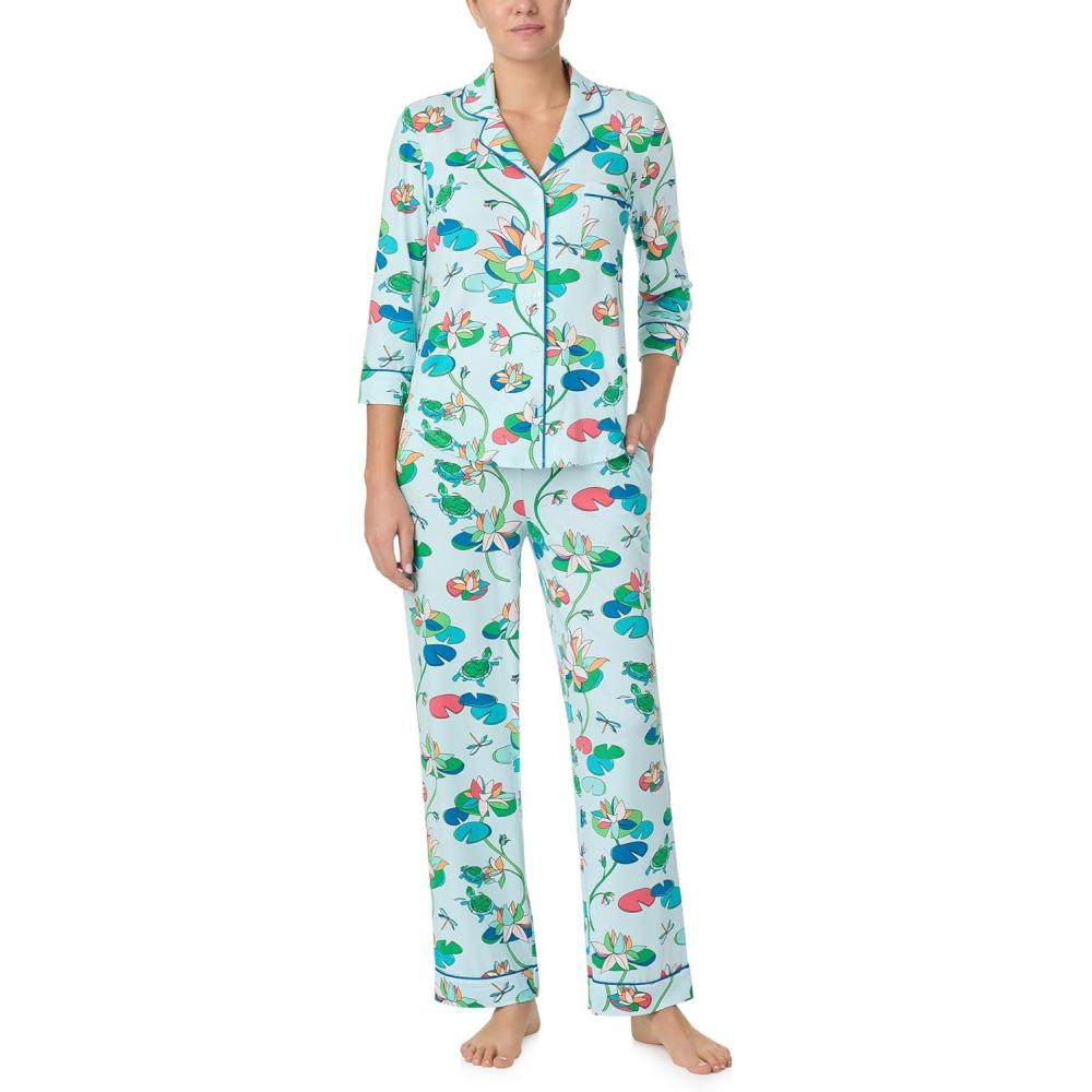kate spade new york Pajamas for Women 2 Piece Set Comfy Modal Classic 3/4 Sleeve Notch Collar Button Top & Pants(Waterlilies)