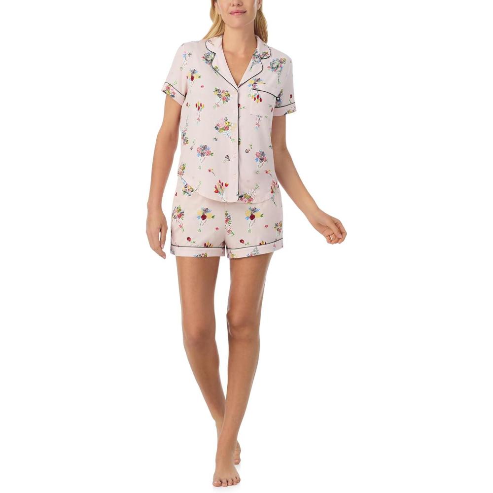 kate spade new york Pajamas for Women 2 Piece Set Comfy Modal Classic Short Sleeve Notch Collar Button Top & Shorts(Pink Whimsical Bouquets)