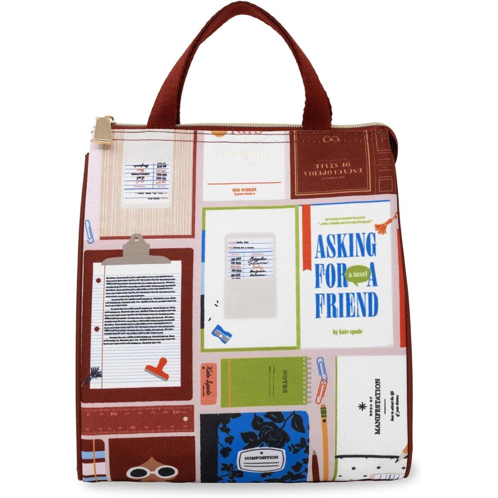 Kate Spade New York Portable Soft Cooler Lunch Bag with Silver Insulated Interior Lining and Storage Pocket, Floral Garden(Book Club)