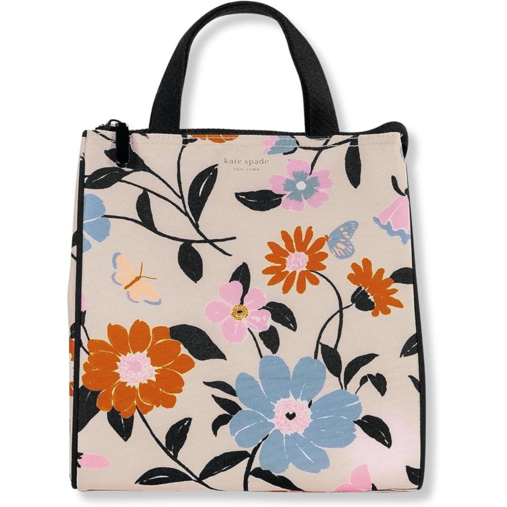 Kate Spade New York Portable Soft Cooler Lunch Bag with Silver Insulated Interior Lining and Storage Pocket, Floral Garden(Floral Garden)