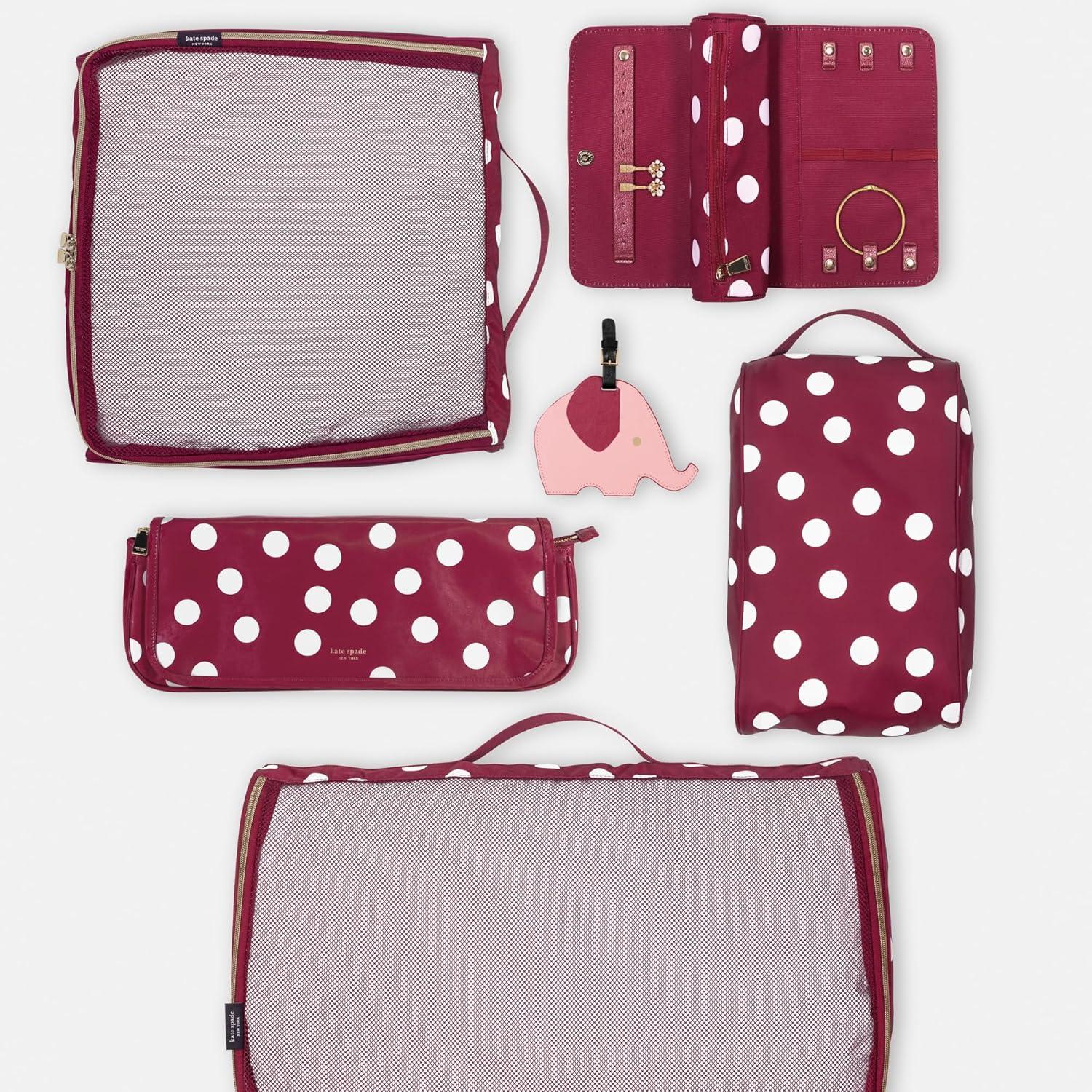 Signature Logo: kate spade new york’s gold foil logo on the travel tags for luggage add an elegant, branded finish.