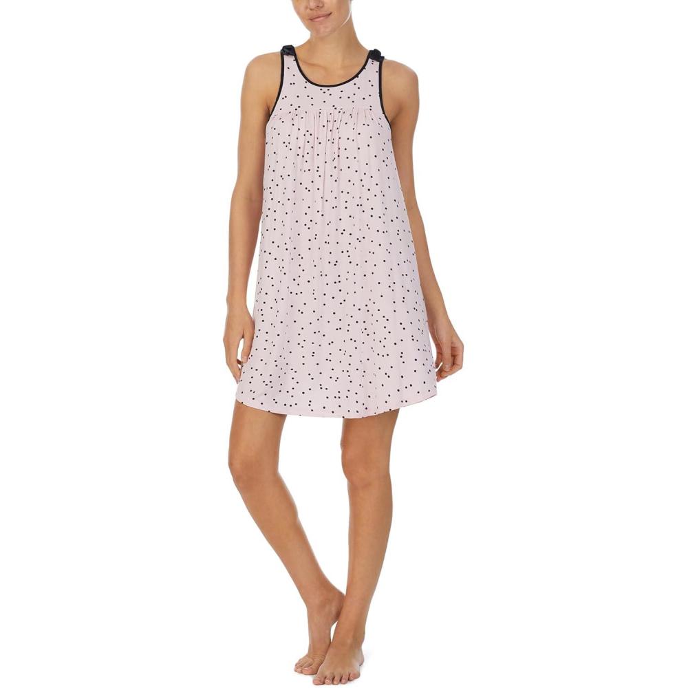 kate spade new york Scoop Neck Chemise for Women, Soft Modal Spandex Sleepwear with Satin Trim, Sleeveless Nightgown(Scattered Pink Dot)