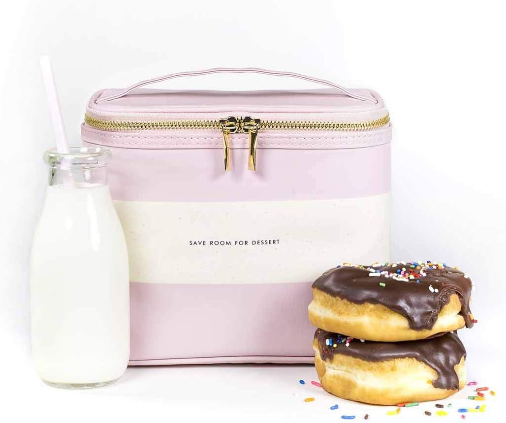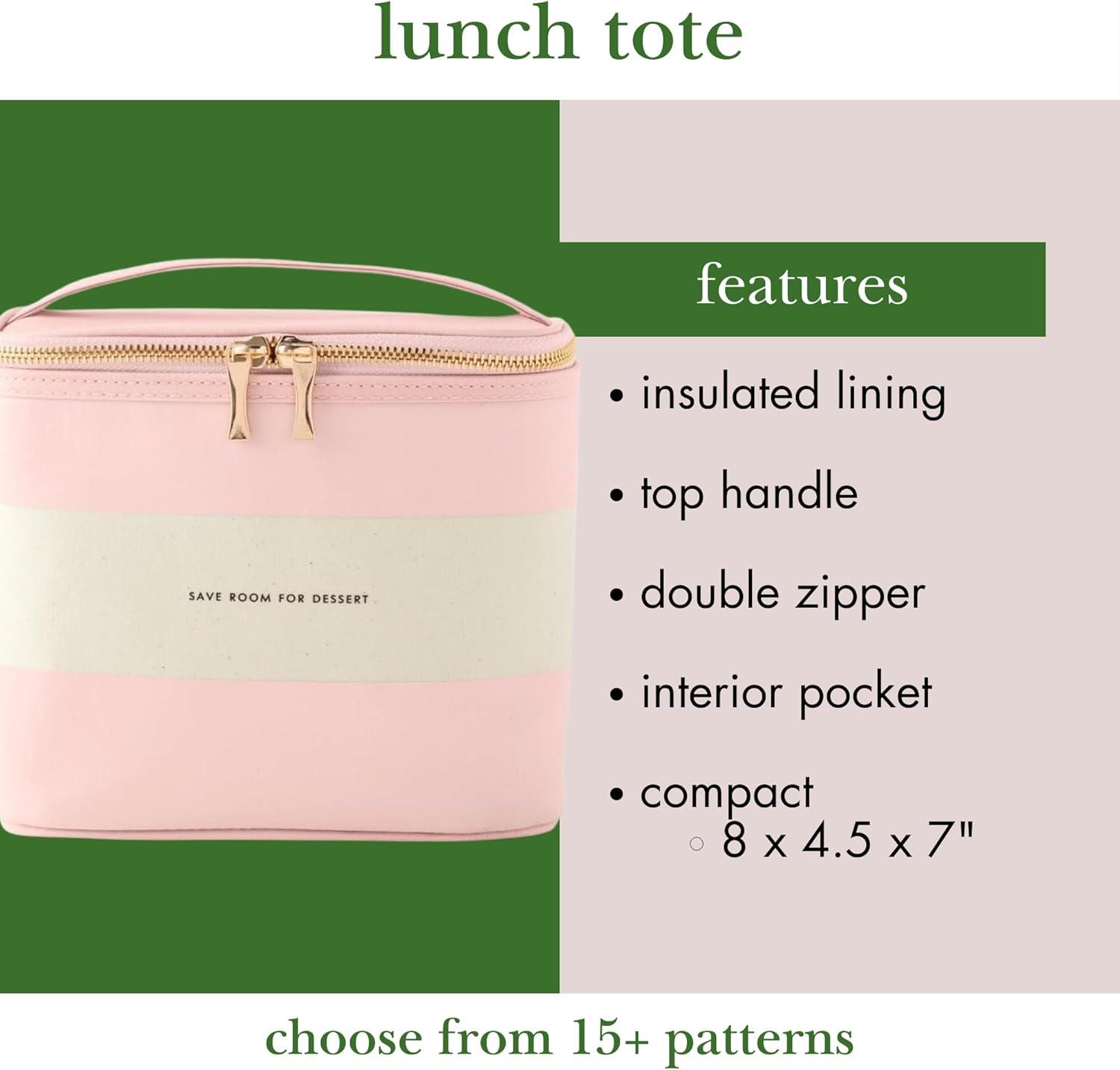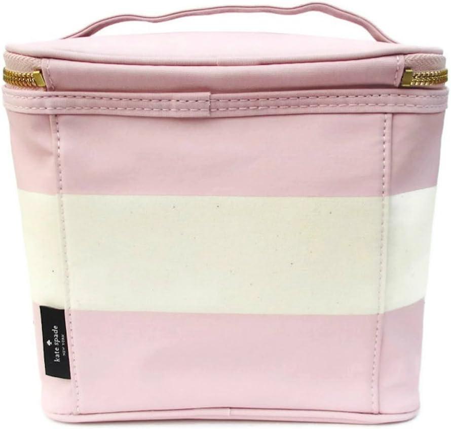 kate spade new york Small Insulated Lunch Tote, Lunch Cooler, 8 x 7 x 4.5 Cute Lunch Bag for Women, Pink Thermal Bag with Double Zipper Close and Carrying Handle, Blush Rugby Stripe