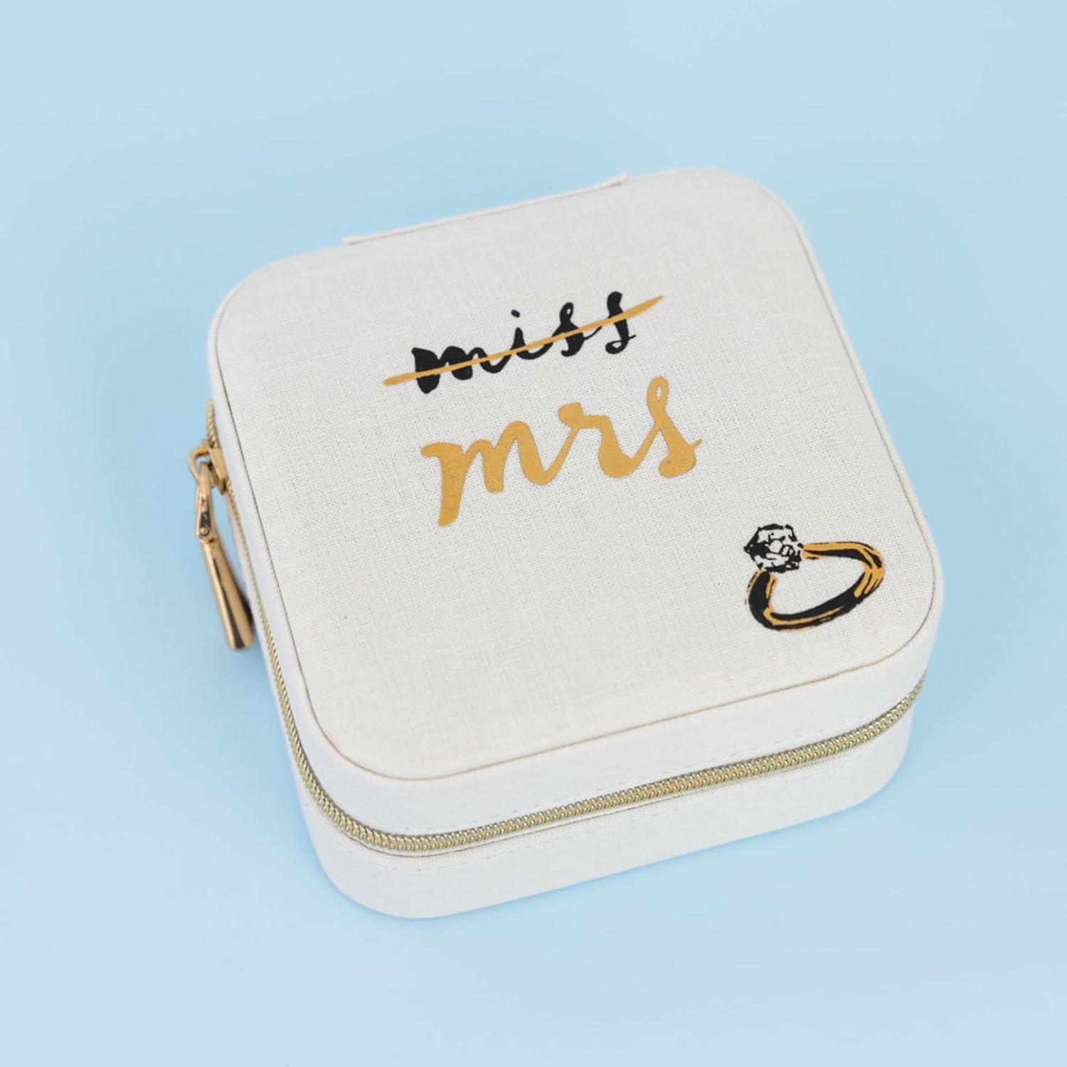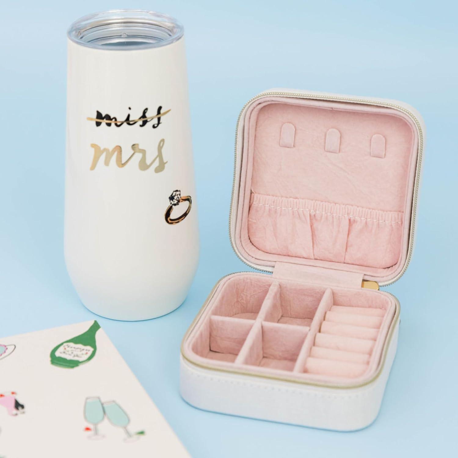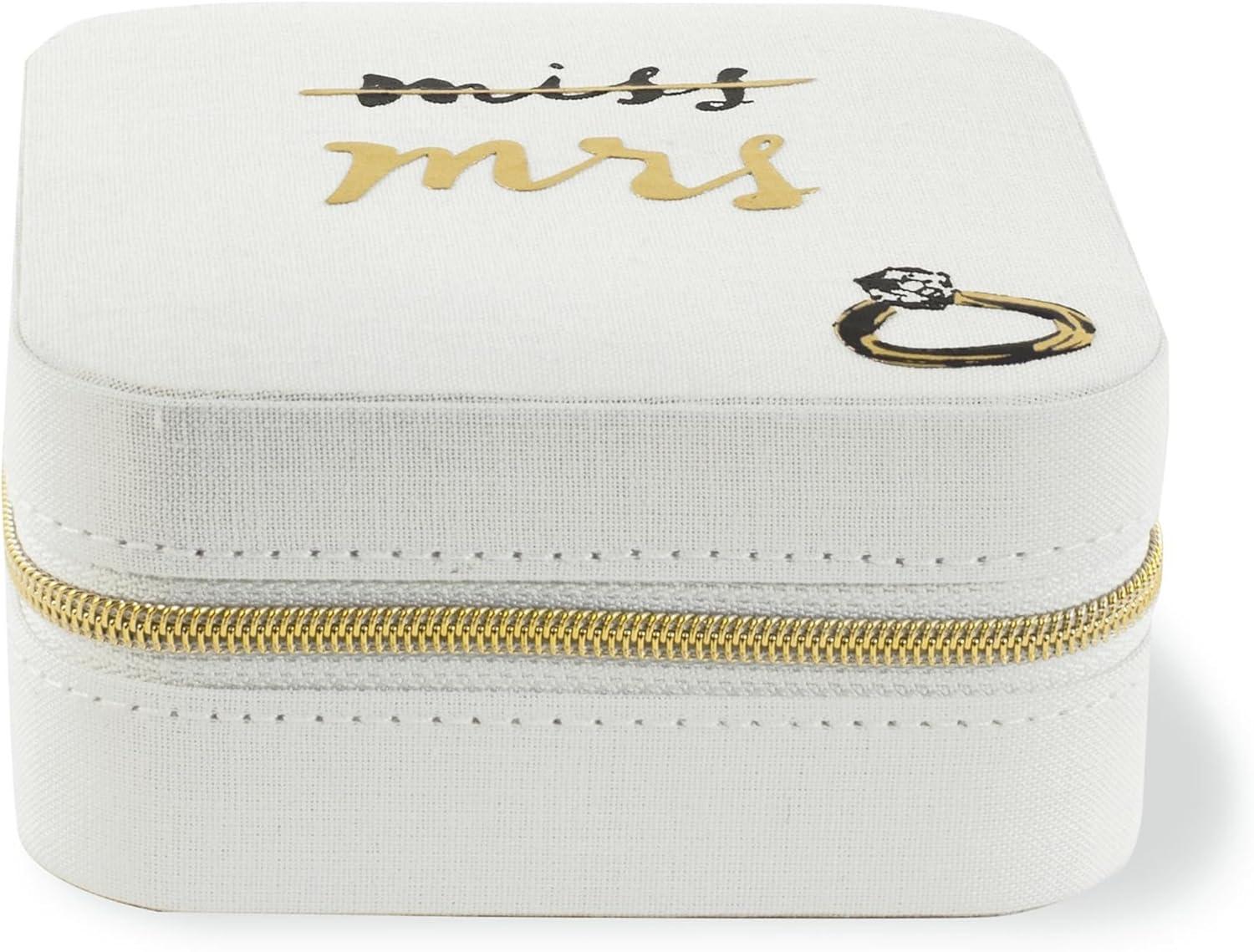 kate spade new york Small Travel Jewelry Case, White Wedding Jewelry Box to Organize Rings, Necklaces, Earrings, Miss to Mrs