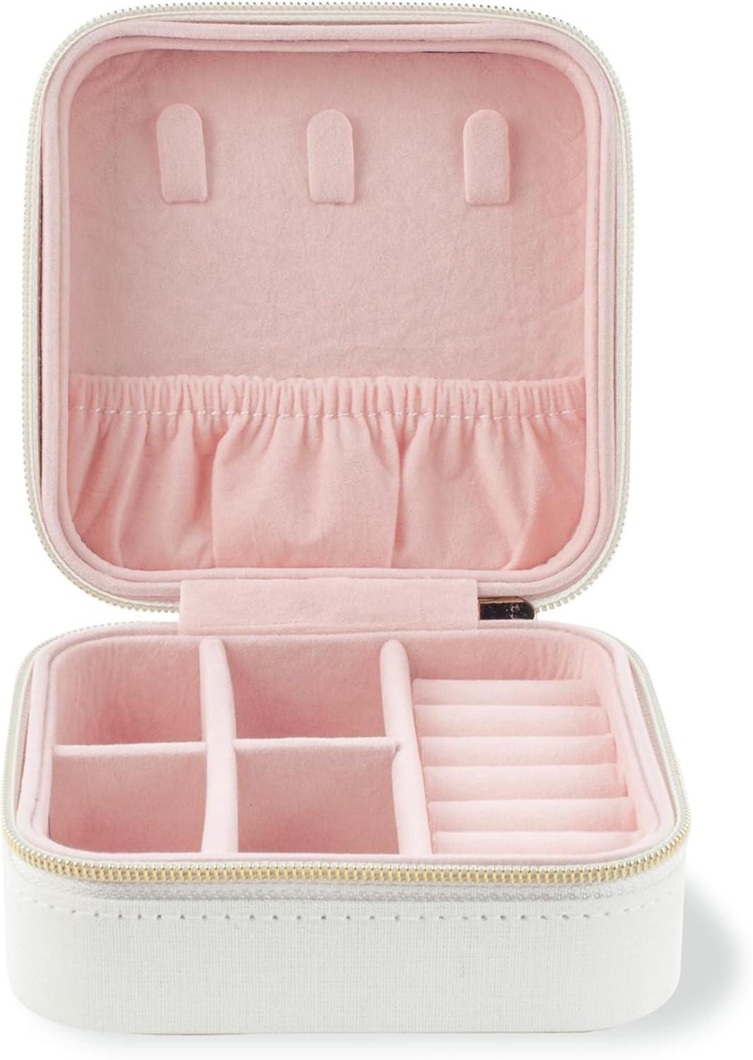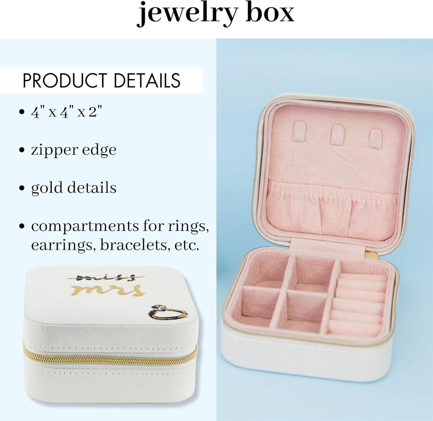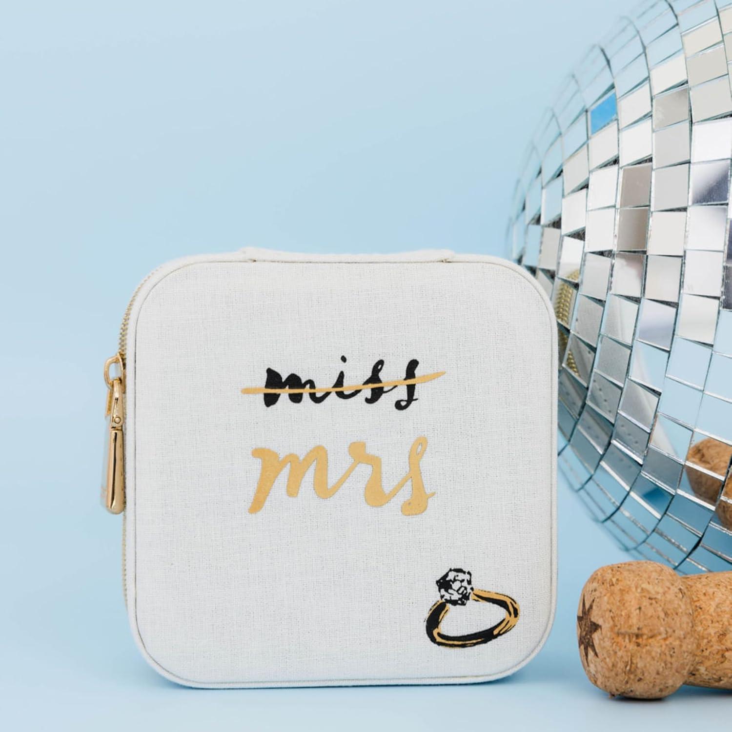kate spade new york Small Travel Jewelry Case, White Wedding Jewelry Box to Organize Rings, Necklaces, Earrings, Miss to Mrs