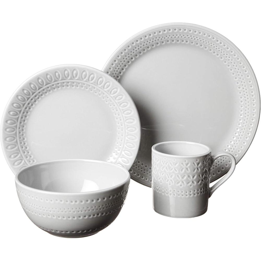 Made from glazed stoneware, the Kate Spade New York Willow Drive Collection is defined by its pretty, eyelet-inspired detail and sets the scene for any meal–whether it's a homemade, multi-course masterpiece or takeout. The Willow Drive Grey 12-piece Dinnerware Set is microwave and dishwasher-safe.