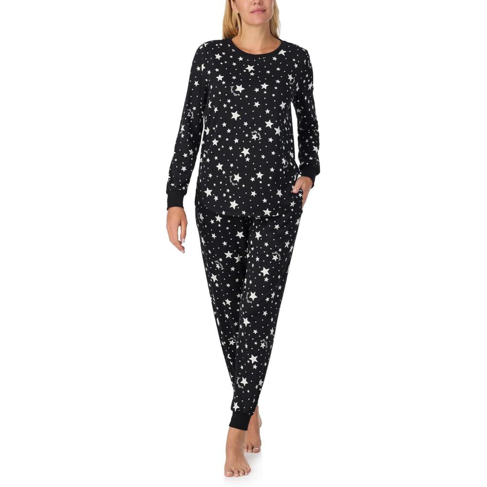kate spade new york Women’s 2-Piece Long Sleeve Crew Neck Top & Jogger Pants Pajama Lounge Set, Velour, Drawstring Waist(Night Stars)