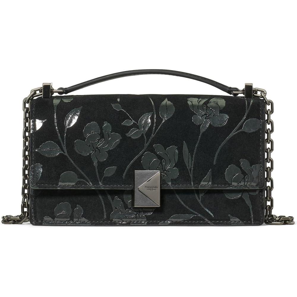 kate spade new york womens Deco Mini Leather Flap Chain Crossbody(Black Suede)