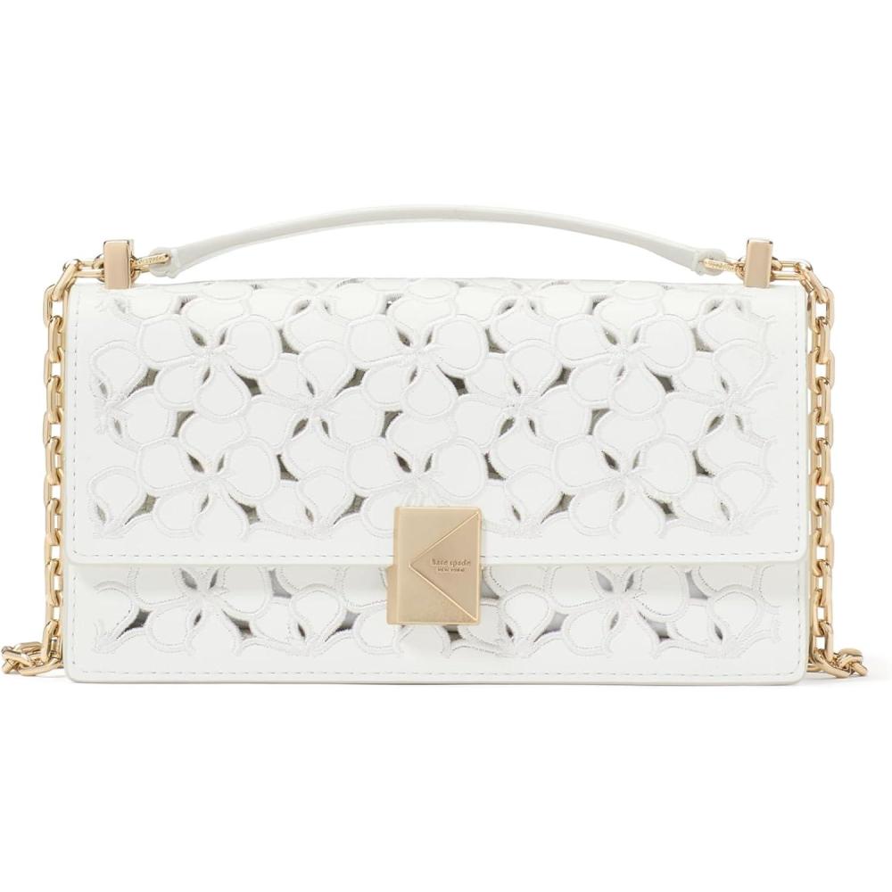 kate spade new york womens Deco Mini Leather Flap Chain Crossbody(Eyelet True White)