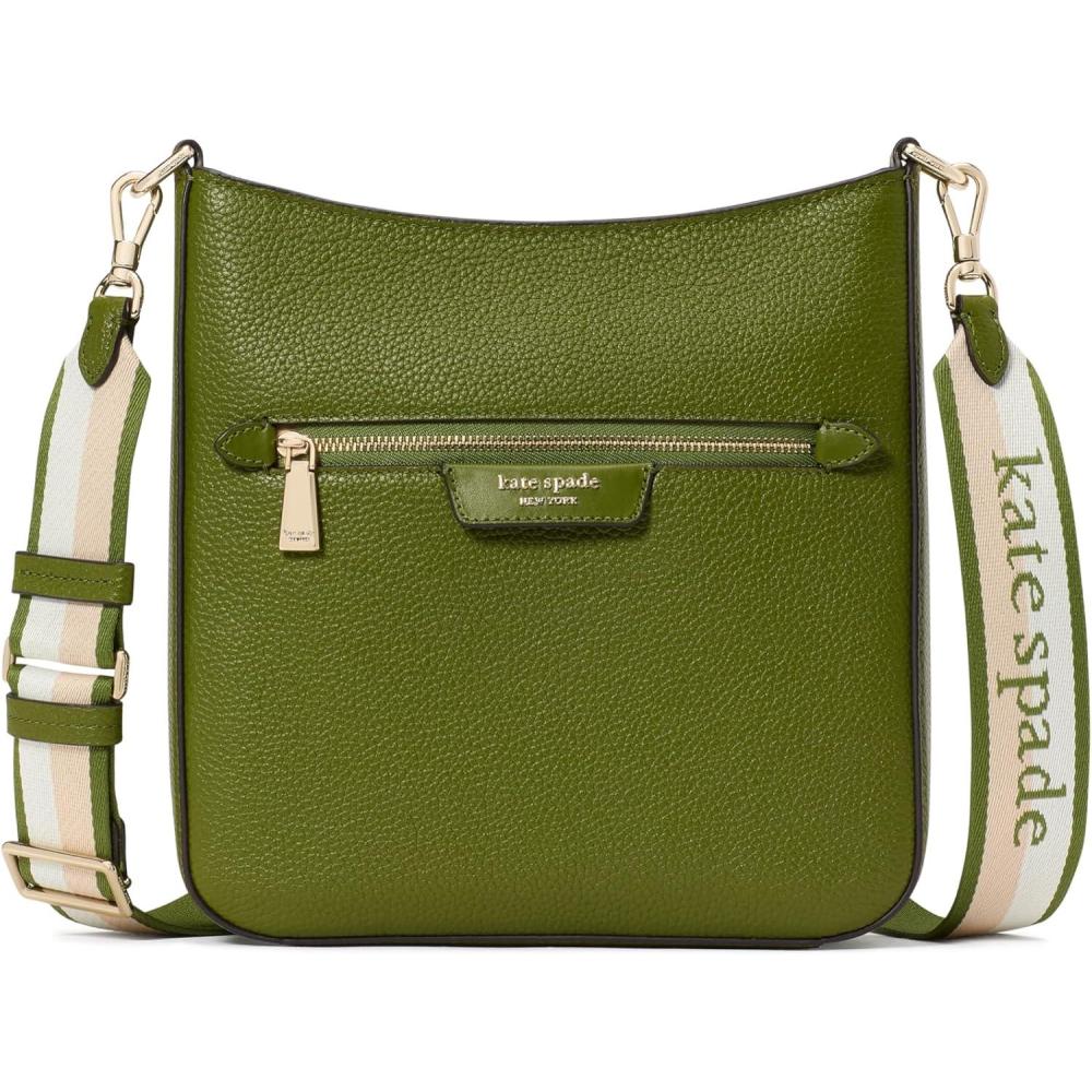 kate spade new york womens Hudson Pebbled Leather Large Messenger Crossbody(Jungle Vine)